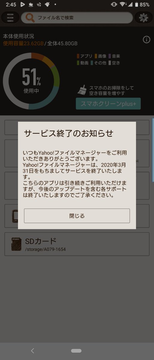 yahoo ファイルマネージャー かゆいところに手が届く 内部ストレージ sdカード管理 2画面操作可能 ドラッグ ドロップで簡単整理 アプリそうけん