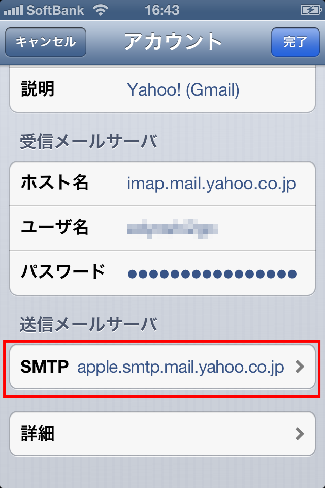 iphoneで yahoo メールの設定