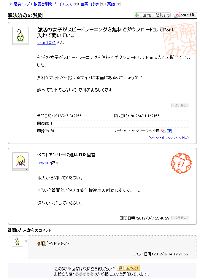 素浪人 の日々不穏 過去記事保管庫 yahoo 知恵袋の相談がどんでん返しすぎて怖いと話題に yahoo 知恵袋 の秀逸作品を集めてみた